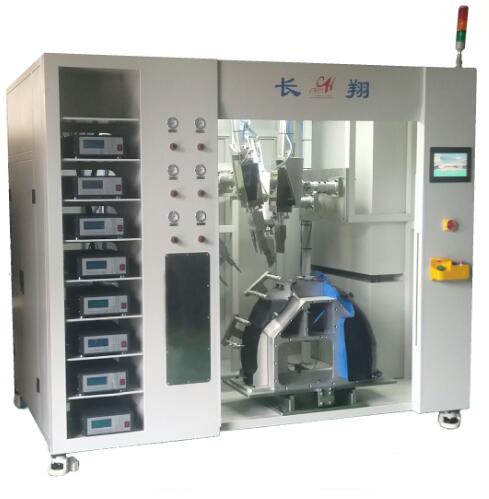 超聲波鉚點焊接機:本機又稱汽車門板鉚焊機,汽車零部件鉚點焊接設備,全自動化鉚焊機等,本設備采用多臺超聲波機器并聯使用,采用伺服電機多工位運動多次焊接,整機為工作臺形式,由雙排超聲波焊接頭、運動板下模具為一體、前置啟動按鈕、急停按鈕、配電箱部分西門子控制屏、SMC氣壓表調節閥等幾大版板組成,并配有照明燈、故障報警等,動作方式為上方超聲波焊頭為氣動控制,下方運動型下模為伺服電機運動。用于集雨板密封條塑料件的焊接,汽車門板鉚焊,汽車操作臺 焊接等工藝。